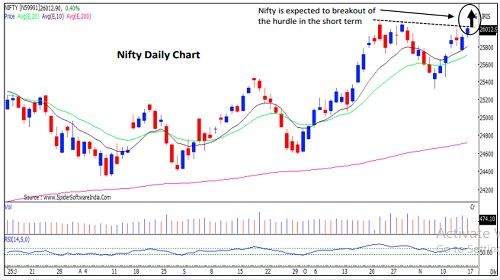 Nifty : Sharp breakout is underway. Nifty is expected to move towards the upside target of 26300 levels soon.