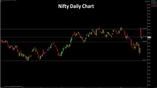 Nifty opened on a flat note and witnessed selling pressure in the initial hour. However, buying from low level recovered earlier losses ledindexto end near day's high.. Nifty closed at 25776 with a gain of 48 points. On the daily chart the index has formed a strong Bullish candlecarryinglong lower shadow indicating buying support at lower levels. The chart pattern suggests that if Nifty crosses and sustains above 25800level itwould witness buying which would lead the index towards 25900-26000 levels. Important Supports for the day is around 25560Howeverifindex sustains below 25560 then it may witness profit booking which would take the index towards 25500-25400 levels.