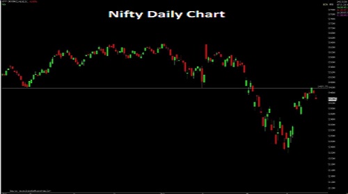 Nifty opened with a downward gap and witnessed bounce back in initial hours. However, selling pressure in second half dragged index lower to close near the day's low.. Nifty closed at 24173 with a loss of 205 points. On the daily chart the index has formed a Bullish candle with an upper shadow indicating selling at higher levels. The chart pattern suggests that if Nifty breaks and sustains below 24100 level it would witness selling which would lead the index towards 24000-23930 levels. However, if index crosses above 24310 level it would witness pullback rally which would take the index towards 24380-24500.