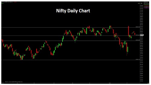 Nifty opened with a negative note and remained lackluster within narrow trading range throughout the day. Nifty closed at 25807 with a loss of