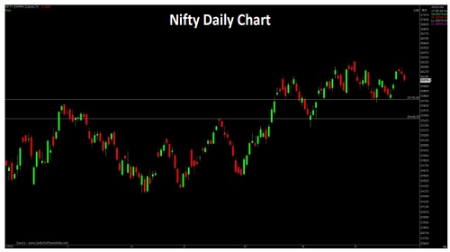 Nifty opened with an flat note and witnessed consolidation for most part of the session. However last hour pullback action pulledindexhigherto close near the day's high.. Nifty closed at 25970 with a gain of 28 points. On the daily chart the index has formed a "Doji" candlestickformation indicating indecisiveness amongst market participants regarding the direction. The chart pattern suggests that if Nifty crossesandsustains above 25980 level it would witness buying which would lead the index towards 26100-26150 levels. Important Supports for thedayisaround 25870 However if index sustains below 25870 then it may witness profit booking which would take the index towards 25800-25700levels