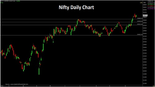 Nifty opened with an upward gap and remained in positive terrain throughout the day. Nifty closed at 25966 with a gain of 171 points. On the daily chart the index has formed a long Bullish candle forming higher High-Low formation compared to previous session indicates positive bias.The chart pattern suggests that if Nifty crosses and sustains above 26006 level it would witness buying which would lead the index towards 26100-26200 levels. Important Supports for the day is around 25820 However if index sustains below 25820 then it may witness profit booking which would take the index towards 25670-25600 levels.