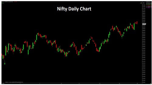 Nifty opened with an upward gap but witnessed selling from the opening tick to end near the day's low. Nifty closed at 26176 withalossof27points. On the daily chart index has formed a small bearish candle representing resistance at higher levels. The chart pattern suggeststhatifNifty crosses and sustains above 26250 level it would witness buying which would lead the index towards 26300-26350 levels. ImportantSupports for the day is around 26120 However if index sustains below 26120 then it may witness profit booking which wouldtaketheindextowards 26050-26000 levels