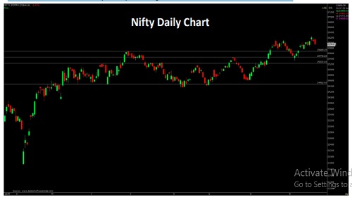 Nifty opened on a positive note and extended buying momentum in the first half however selling in the second half led the indexlowertoclose near day's low. Nifty closed at 25960 with a loss of 109 points. On the daily chart the index has formed a long Bearish candleforminglower High-Low compare to previous session indicating negative bias. The chart pattern suggests that if Nifty crosses and sustains above26000level it would witness buying which would lead the index towards 26150-26250 levels. Important Supports for the day is around 25900Howeverif index sustains below 25900 then it may witness profit booking which would take the index towards 25850-25750 levels.