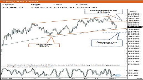 * Key point to highlight is that index has once again respected the 200- day EMA support in today’s session coinciding with the lower band of the rising channel joining the lows of Aug-Sep2025. Going ahead, Index holding firm above its panic low of 24919 would keep the pullback option open towards 25,600. Nevertheless, volatility is likely to remain elevated amid the upcoming Union-Budget, Q3 earnings and geopolitical uncertainties.