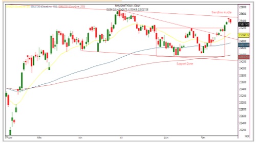 * Technically, we feel the performance of the banking majors, especially the private pack, would remain in focus for a decisive break above 25,500 in the Nifty while others heavyweights could help in keeping the tone positive amid consolidation.