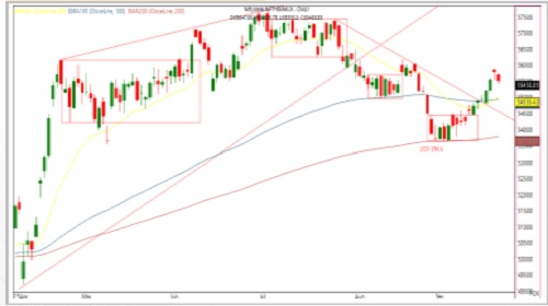 * Immediate resistance is seen near 56,200, with critical support placed around 54,900.