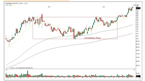 * Consolidation near recent highs, accompanied by healthy volumes, indicates supply absorption rather than distribution.