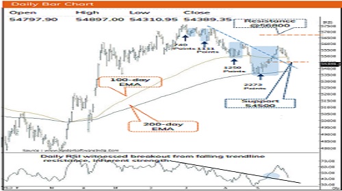 Bank Nifty halted three-weeks of winning streak closed on a negative note to settle at 54,389 down 1.93%. The Nifty Private Bank index has mirrored the benchmark, ending the week at 26,488 down 1.79%..
