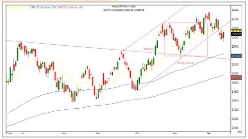 * A sustained move above the first key hurdle—the 20-DEMA around 25,950—is essential to confirm further recovery; failure to do so could trigger renewed profit-taking.
