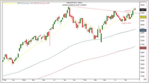 * We maintain our positive stance and suggest focusing on buying opportunities during dips, with a preference for sectors and themes that are moving in sync with or outperforming the benchmark.