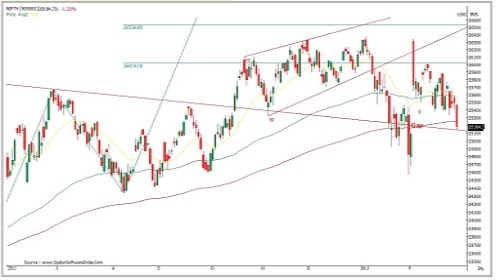 * The Nifty has not only surrendered the support zone of 25,400 but has also moved closer to the gap area around the 25,100 mark.