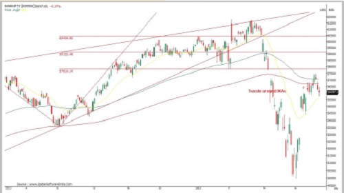 * Immediate resistance is observed near 57,100, with key support around 55,000.