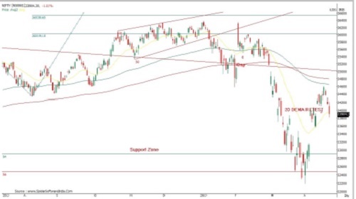 * As Nifty slipped below its crucial support of 23,900 i.e. 20 DEMA, we may see the bias changing to negative, with next cushion at 23,500 level.