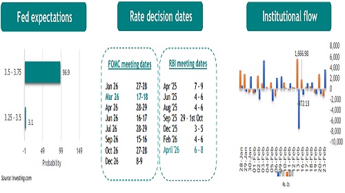Nifty struggled to float above 25700 yesterday signalling loss in upside momentum. But, since oscillators are yet to suggest an outright collapse, our preferred view for the day is to look for swings on either sides of 25550, with larger range seen as 25300- 25840.