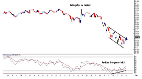 * Option data suggests a broader trading range in between 22600 to 23600 zones while an immediate range between 22900 to 23400 levels.