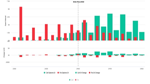 * Call writing is seen at 25000 then 24600 strike while Put writing is seen at 24500 then 23500 strike.