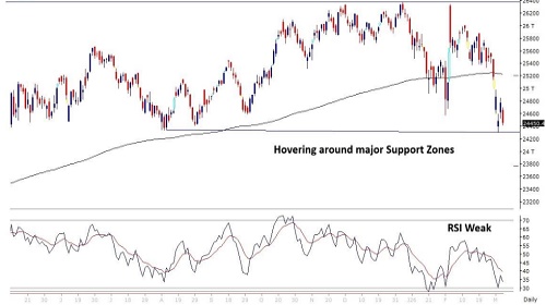 NIFTY (CMP : 24450) Nifty immediate support is at 24000 then 23800 zones while resistance at 24600 then 24800 zones. Now till it holds below 24600 zones, weakness could be seen towards 24000 then 23800 zones while hurdles have shifted lower to 24600 then 24800 zones.