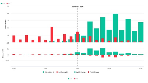 * Call writing is seen at 25400 then 25300 strike while Put writing is seen at 25150 then 25100 strike.
