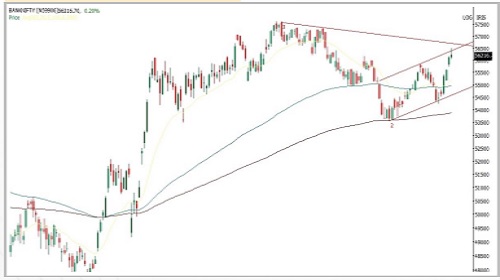 * Technically, the index faces immediate resistance near the 57,350 level, with strong support established around 55,350.