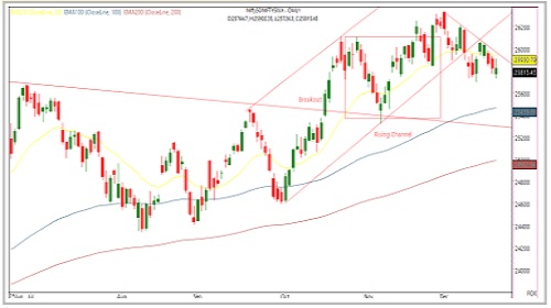 * On the upside, the short-term moving average, the 20-DEMA, continues to act as an immediate hurdle around 25,950, and a sustained move above this level will be essential for the next leg of the up move.