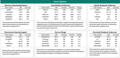 Nifty weekly contract has the highest open interest at 25000 CE and 23000 PE while monthly contracts have the highest open interest at 25000 CE and 23000 PE. The highest OI addition was seen at 25000 CE and 24200 PE in weekly and at 24200 CE and 24000 PE in monthly contracts. FIIs decreased their future index long holdings by 9.38%, decreased future index shorts by 5.26% and in index options, 0.27% decrease in Call longs, 0.31% increase in Call short, 2.27% increase in Put longs and 4.38% increase in Put shorts.