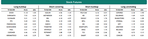 Nifty weekly contract has the highest open interest at 25000 CE and 24000 PE while monthly contracts have the highest open interest at 25000 CE and 24000 PE. The highest OI addition was seen at 25500 CE and 24200 PE in weekly and at 25200 CE and 24200 PE in monthly contracts. FIIs increased their future index long holdings by 0.44%, decreased future index shorts by 2.96% and in index options, 28.10% decrease in Call longs, 19.99% decrease in Call short, 26.21% decrease in Put longs and 34.99% decrease in Put shorts.