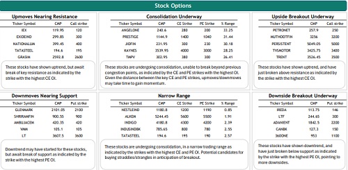 Nifty weekly contract has the highest open interest at 23500 CE and 21500 PE while monthly contracts have the highest open interest at 23000 CE and 23000 PE. The highest OI addition was seen at 23000 CE and 21600 PE in weekly and at 23000 CE and 22500 PE in monthly contracts. FIIs increased their future index long holdings by 10.84%, increased future index shorts by 2.17% and in index options, 39.25% increase in Call longs, 12.28% increase in Call short, 25.47% increase in Put longs and 32.07% increase in Put shorts.