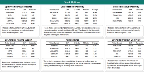 Nifty weekly contract has the highest open interest at 25500 CE and 23500 PE while monthly contracts have the highest open interest at 25500 CE and 24000 PE. The highest OI addition was seen at 25000 CE and 23300 PE in weekly and at 25000 CE and 24600 PE in monthly contracts. FIIs decreased their future index long holdings by 9.36%, increased future index shorts by 4.77% and in index options, 18.77% increase in Call longs, 10.39% increase in Call short, 23.37% increase in Put longs and 0.01% increase in Put shorts.