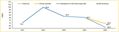 Our view: Over the past decade, the US has sought to increase its share of global oil and gas trade, while OPEC+ has attempted to limit it. Following the Russia-Ukraine war, tariffs on Russian oil and subsequent discussions may lend support to the US in increasing its market share in the global oil and gas supply. Nonetheless, Brent crude is likely to remain range-bound between US $60 and $75/b in absence any significant geopolitical escalation. Below US$60/b, marginal US supply becomes uneconomical, while above US$75/b, demand elasticity is expected to increasingly moderate prices in the current macroeconomic climate.