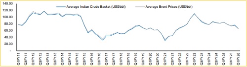 Exhibit 3: Average Indian Crude Basket (US$/bbl) against Average Brent Prices (US$/bbl)