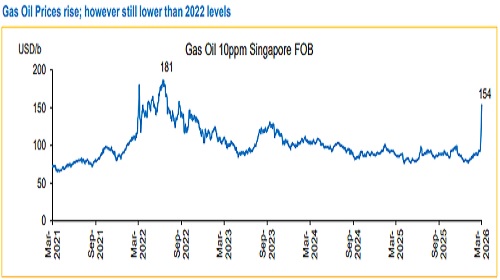 * Brent price spiked to ~USD112/b on March 18, 2026, 9% higher compared to closing price of USD103.42/b the previous day. The spike in Brent prices is on the back of an attack on Iran’s South Pars gas field, part of the world’s largest natural gas deposit.