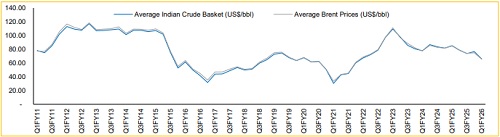 Chart 3: Average Indian Crude Basket (US$/bbl) against Average Brent Prices (US$/bbl)