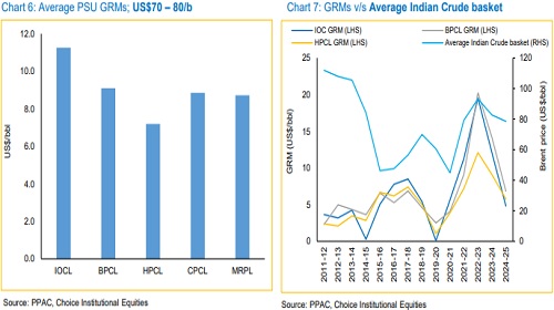 To tackle volatility, we have mapped the average GRMs between FY12 to FY25 of refining businesses of PSUs across various ranges of Brent prices.