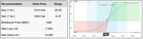 * Range : The OI profile suggests a short-term trading range most likely between 1380 (Strong Support) and 1500 (Strong Resistance).