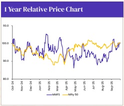 The long-term outlook for MMFS is positive, supported by its deep rural presence, strong promoter backing, and a clear strategy for portfolio diversification. With steady AUM growth, improving cost efficiencies, and stable asset quality, the company is well-positioned for healthy earnings momentum. We maintain a positive outlook with a Buy rating and a target price of Rs. 327, valuing the company at 1.4x its FY27E adjusted book value.