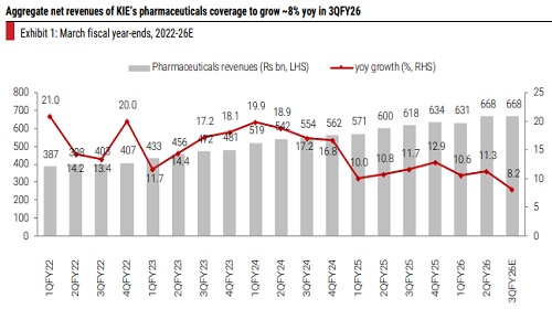 Barring the expected sharp decline in gRevlimid sales, we expect 3QFY26 to be another steady quarter for our pharma coverage. Despite the gRevlimid cliff, we expect ~8%/2% yoy growth in overall sales/EBITDA in 3QFY26, led by steady ex-gRevlimid US sales and healthy growth in India and non-US markets. For CRDMOs, we bake in 6% yoy sales growth for companies across our coverage. For generic API companies under our coverage, we bake in a slight volume uptick for most companies, factoring in 7% yoy overall sales growth in 3QFY26. Within our coverage, SUNP, LPC, CIPLA, EMCURE, SAI and PPL are our preferred picks.
