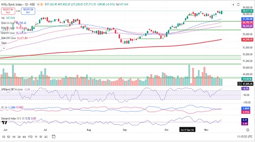 Bank Nifty made a low of 57846.20 and bounced back making a high of 58615.95.