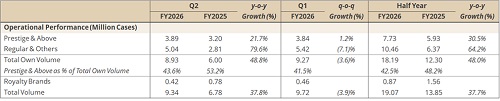 * Prestige & Above brands volume of 7.73 Million Cases (+30.5%); Prestige & Above brands contribution to the IMFL volumes of 42.5% (vs. 48.2%)