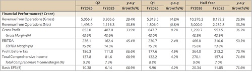 * EBITDA of Rs. 466.8 Cr (+50.3%) at 15.6% margin (compared to 13.8% in H1 FY25)
