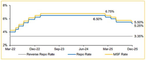 * Similarly, SDF Rate and MSF Rate (overnight rates) were cut by 25 bps to 5.0% and 5.5%, respectively,