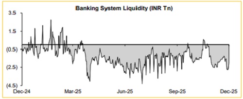 * To maintain adequate and sustained liquidity in the system, RBI has announced OMO purchases of INR 1.0 Tn in two tranches of INR 500 Bn each, to be held on December 11 and December 16, 2025.