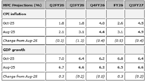 RBI MPC Macro Projections: Oct-25 vs Aug-25