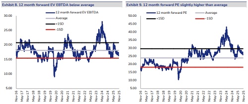 * Raise EBITDA estimates for FY26, largely unchanged for FY27/28, expect medium term challenges to persist: We raise our EBITDA/EPS estimates by ~5% each for FY26 led by rise in EXIM profitability. We retain our estimates for FY27/28. Over the medium term, we maintain our view that pricing aggression by well-funded peers is likely to weigh on CCRI’s pricing, EXIM margin and market share. CCRI’s initiatives to become an integrated logistics play by investing in first mile last mile (FMLM) logistics has been at a slower rate vs peers. CCRI seeks to increase domestic volumes (cement, fly ash etc) but these have marginal impact on EBITDA at best due to low profitability of domestic circuits.