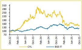 management has outlined its transformation agenda built around 3 core pillars — Marketplace Impact, Technology Acceleration and Organisational Effectiveness. The company has streamlined its go-to-market model, sharpened sales accountability for new business and introduced performance-linked sales incentives focused on deal wins and revenue growth. We believe enhanced focus on large deals and deeper account mining could drive sustainable mid-teen growth and improve client stickiness over the medium term. Concurrently, CYL is scaling up AI and digital engineering capabilities, with new leadership hires and focused investments in data-led automation.