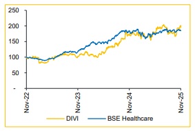The company continues to see strong growth momentum in the synthesis segment, as three major projects are under execution, with an additional 3–4 projects in advanced validation. DIVI also maintains active collaborations with leading pharma players across Phase 1, 2, and 3 peptide programs, but no plan to enter the generic peptides space, focusing entirely on innovator contracts. We believe CS will be a key growth driver and expect this momentum to continue, though it remains contingent on the company’s ability to effectively scale up these projects.