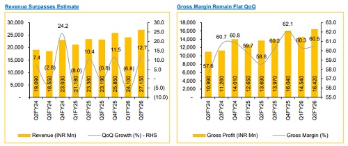 * Revenue grew 16.1% YoY / 12.7% QoQ to INR 27,150 Mn (vs. CIE estimate: INR 25,749 Mn).