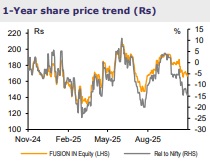 Fusion has undertaken significant governance reforms, making assurance, risk, and other key control functions fully independent and delinking them from business KPIs. Decisionmaking, earlier concentrated among a few individuals, has now been broadened, easing the load on the MD and CEO and improving supervision across functions. As part of guardrail reinforcement, credit personnel have been placed across ~250 large branches to meet customers directly and ensure adherence to guardrails and bureau data norms. Process and operational gaps have been fixed and thus, fresh disbursements (Rs13bn in 2Q, up 37% QoQ) have accelerated as well. Margins inched up by 55bps QoQ to 10.9% in 2Q due to lower stress flow and cost management. The management expects margins in the stable-to-positive zone as borrowing costs ease further; we believe capital infusion too should help the margins.