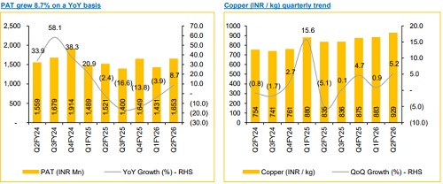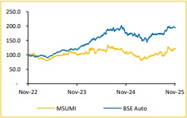 Best ever Quarterly Performance in terms of Revenue: MSUMI posted robust revenue growth (+19% YoY) during the quarter, outpacing industry growth, driven by higher premiumisation, volume gains and increased participation in new model launches. The recently operational greenfield facility is ramping up as planned and upcoming projects at Navgam (Gujarat) and Pune (Maharashtra) are expected to further strengthen long-term growth visibility. With a growing EV revenue share and expanding order book, MSUMI remains well positioned to capture opportunities arising from the automotive industry’s transition toward EV and hybrid powertrains. Continued capacity expansion and incremental order wins underpin steady medium-term growth momentum.