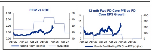 Downgrade NALCO to REDUCE with a new target price of Rs302 NALCO is trading at a significant premium valuation of 4× P/BV; however, given the upcycle, on an EV/EBITDA basis, the stock is still near its historical average. We continue to believe that P/BV is the right metric to evaluate the company; however, to account for the upcoming expansion, we value it at 7.5× FY28F EV/EBITDA to arrive at a new target price of Rs302 (Rs176 earlier). Upside risk: Sustained firmness in aluminium prices.
